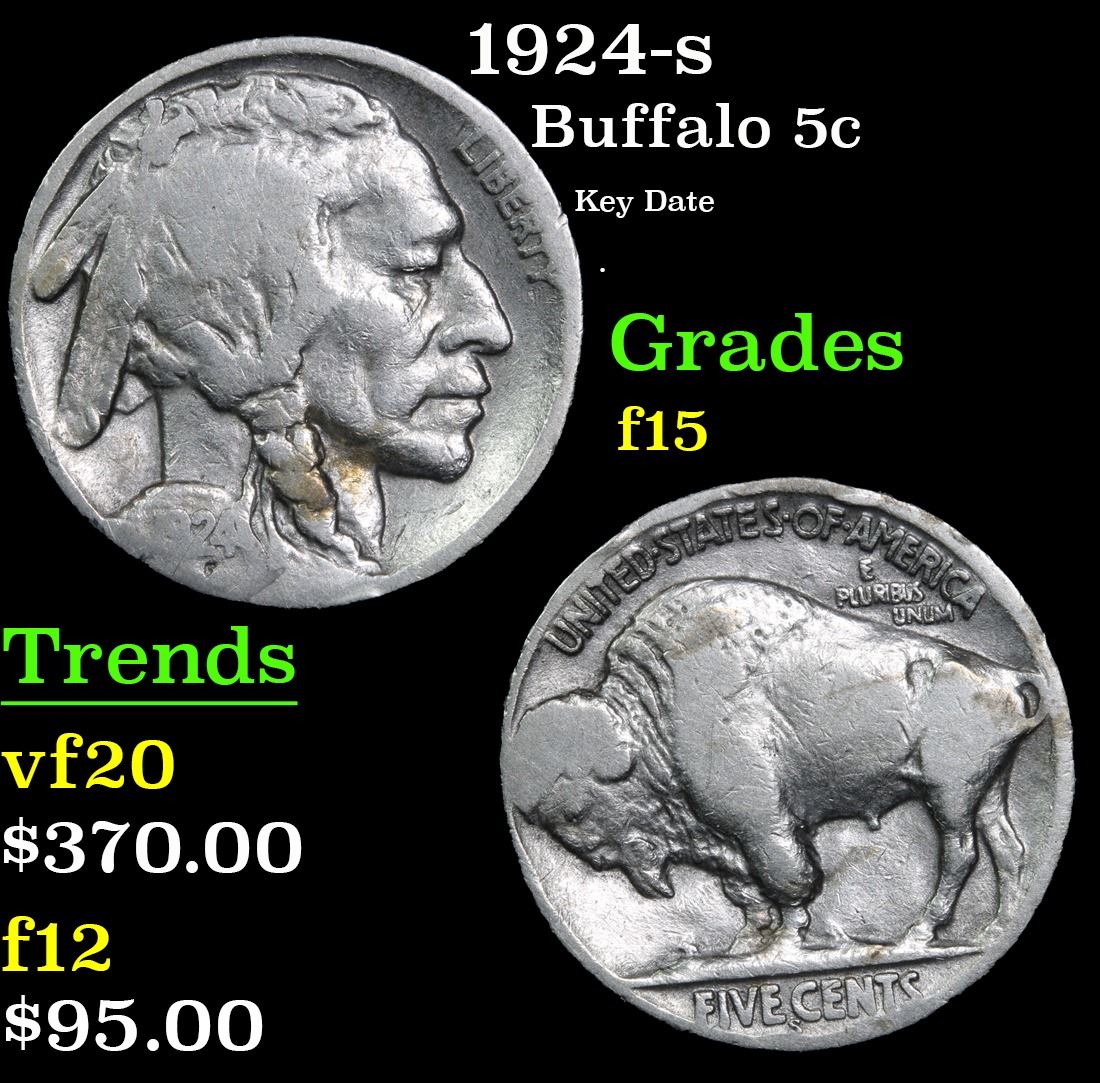 1924-s Key Date . Buffalo Nickel 5c Grades f+.