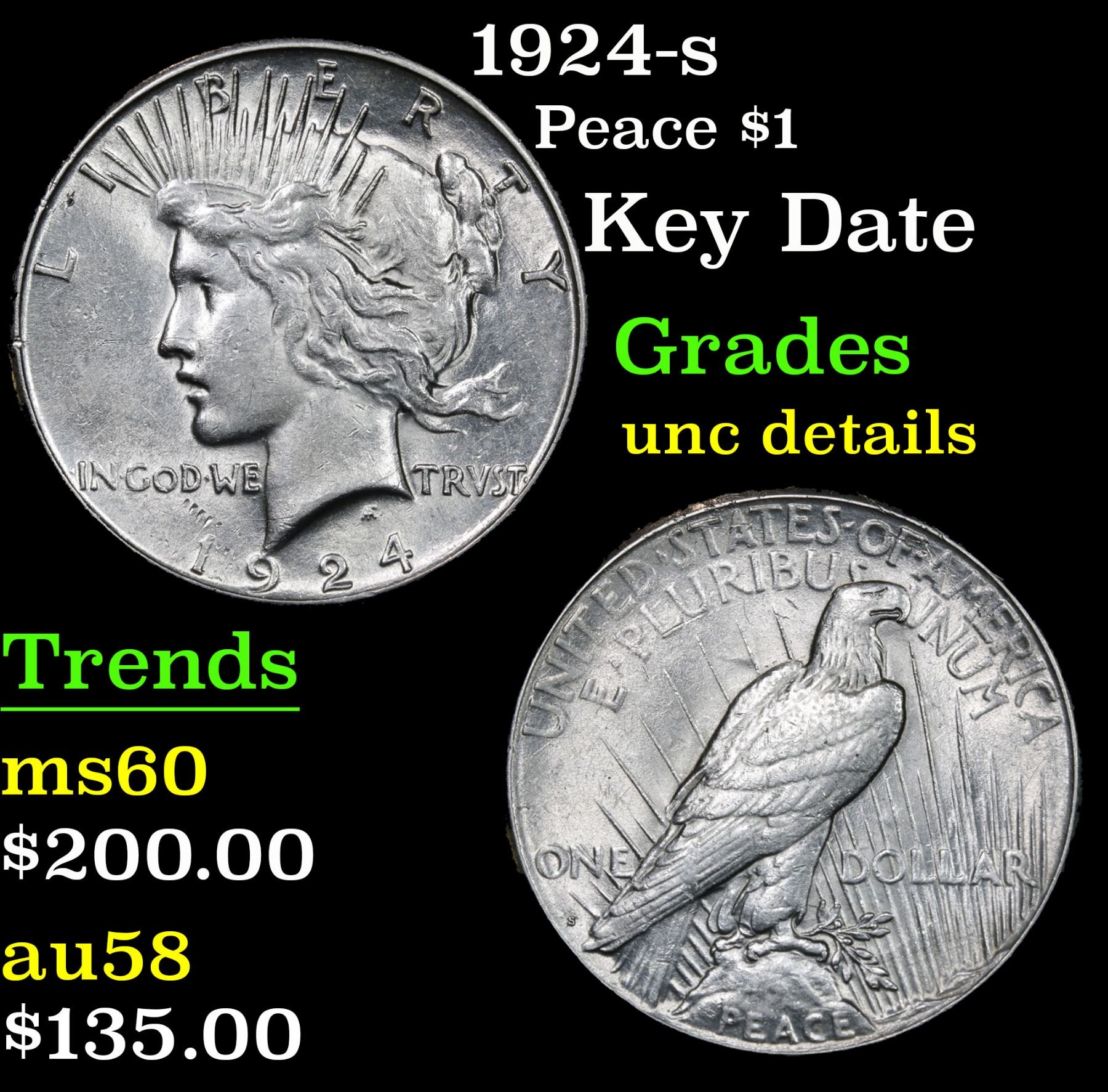 1924-s Key Date . Peace Dollar $1 Grades Unc Details.