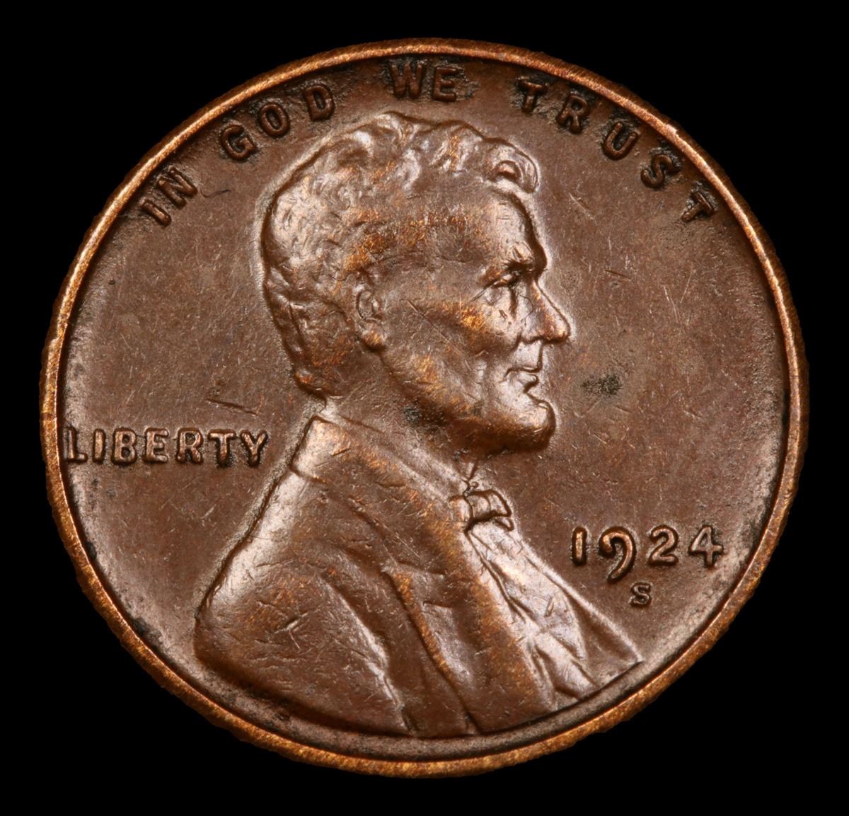 1924-s Lincoln Cent 1c Grades Choice AU.