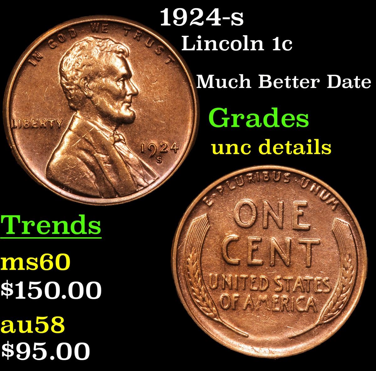 1924-s Much Better Date . Lincoln Cent 1c Grades Unc Details.