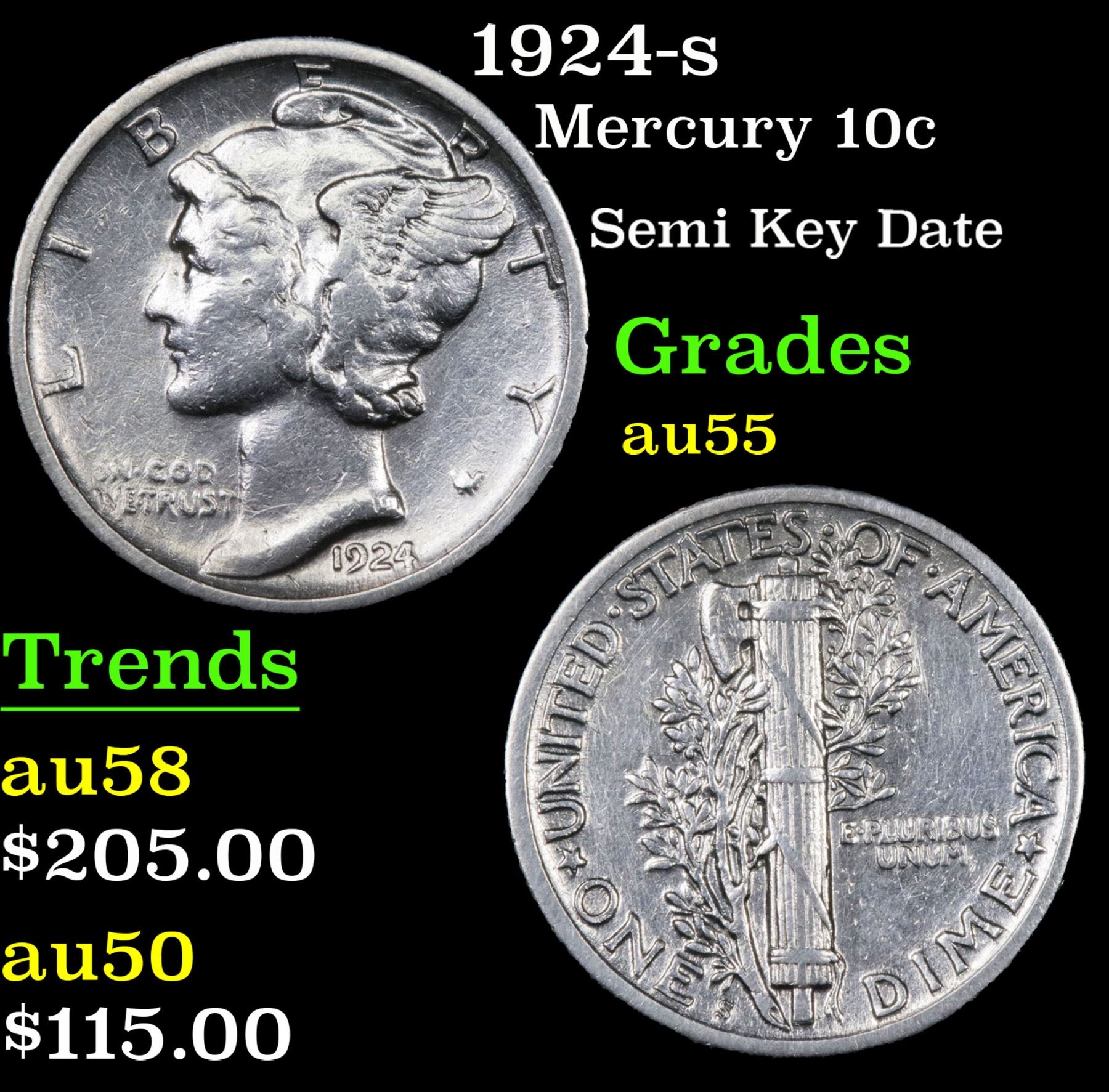 1924-s Semi Key Date . Mercury Dime 10c Grades Choice AU. A Corey's Pick
