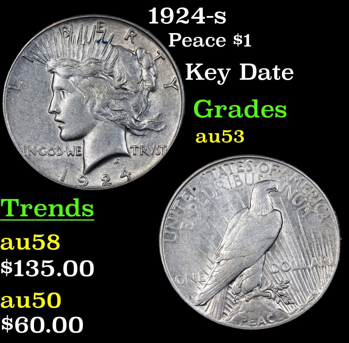 1924-s Peace Dollar $1 Grades Select AU.