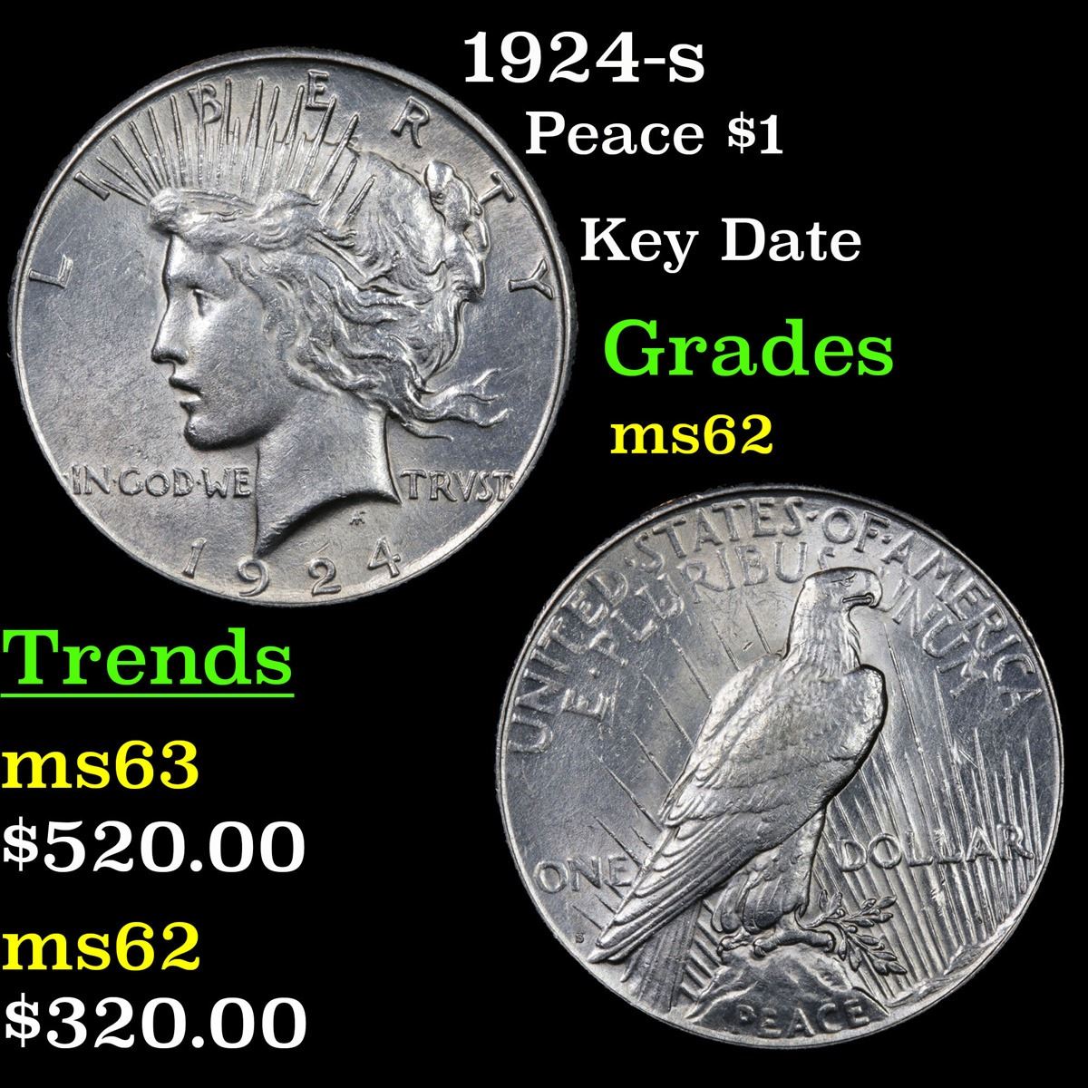1924-s Peace Dollar $1 Grades Select Unc.