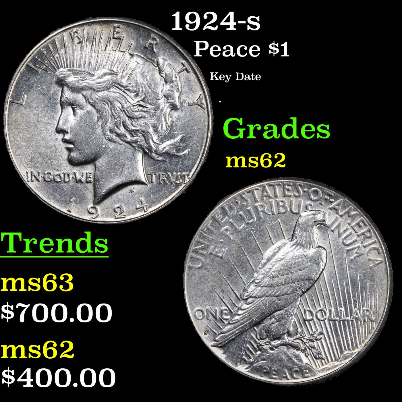 1924-s Peace Dollar $1 Grades Select Unc.