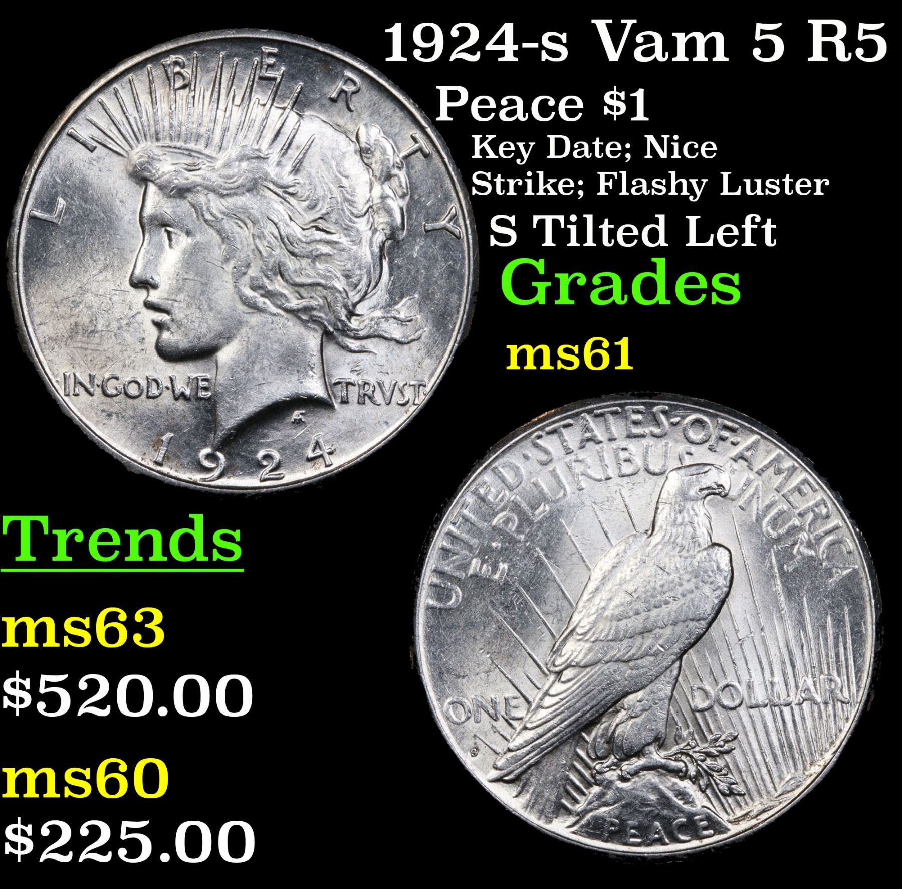 1924-s Vam 5 R5 Peace Dollar $1 Grades BU+.