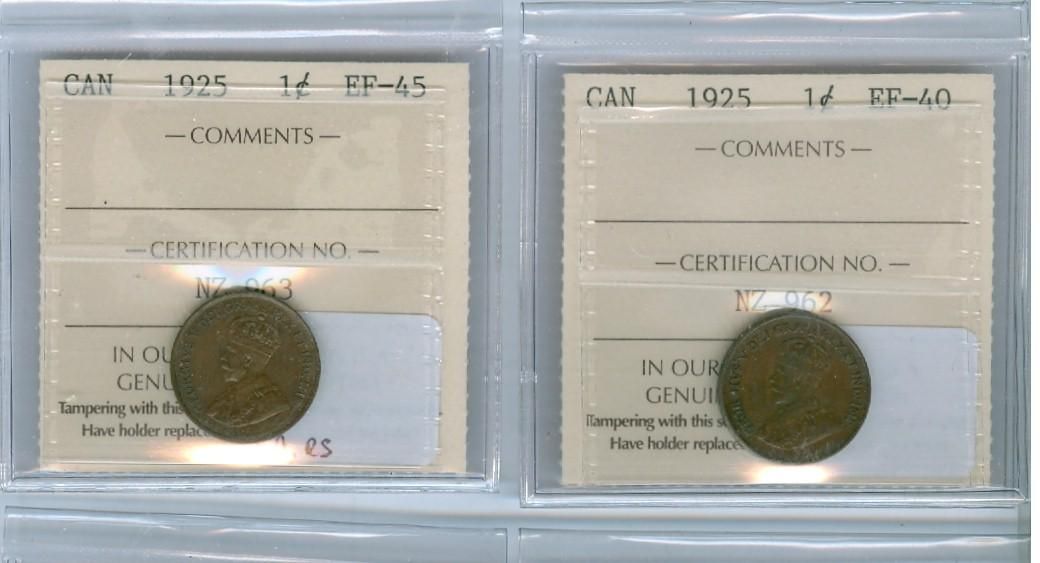 1925 1¢ ICCS EF40 & EF45. Lot of 2 key dates.