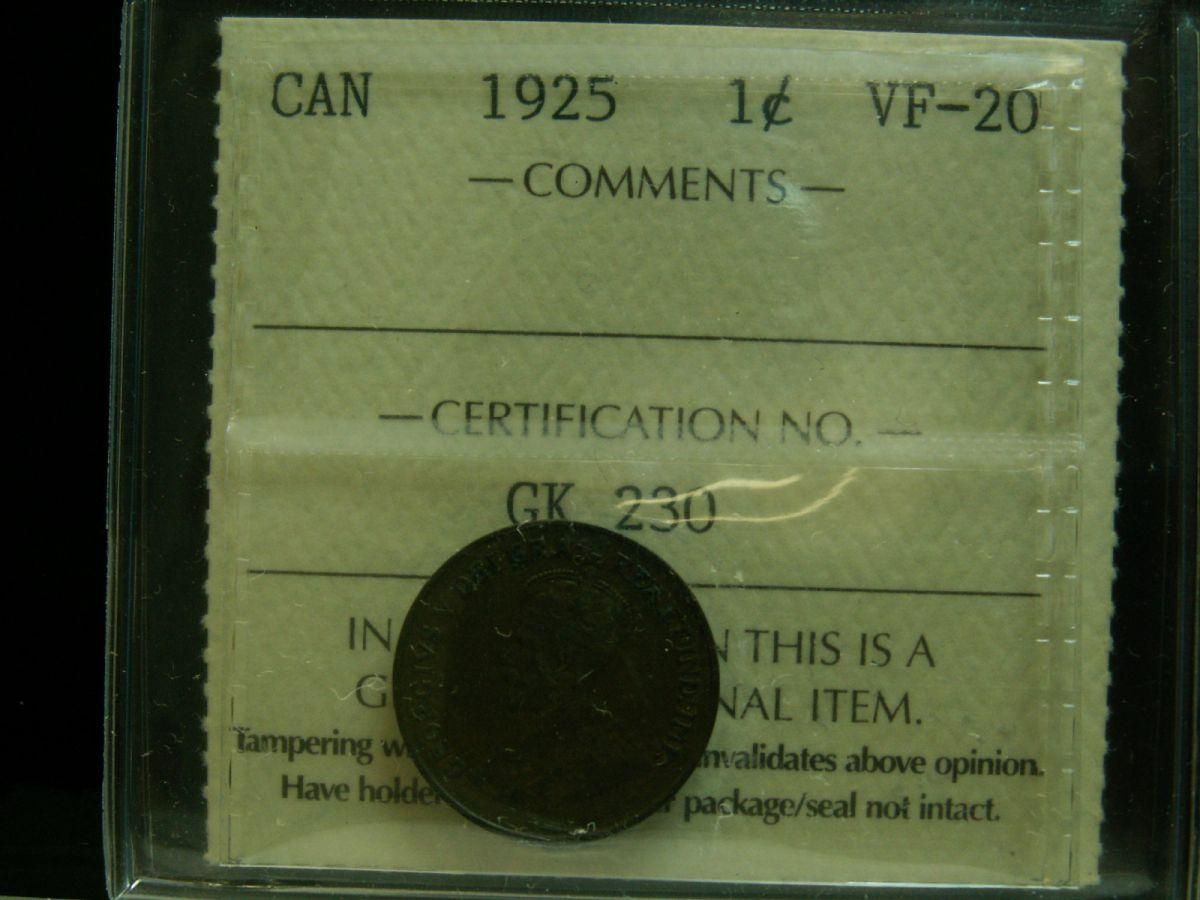 1925 1¢ ICCS VF20