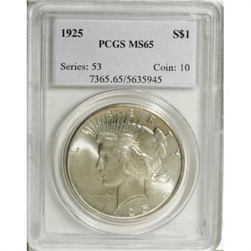 <B>1925 $1 MS65 PCGS.</B></I> PCGS Population (5337/1263). NGC Census: (6907/1016). Mintage: 10,198,000. Numismedia Wsl. Price for NGC/PCGS coin in MS65: $140. (#7365)<BR><BR><B>Coin Engraver:</B> Anthony de Francisci<BR><BR><b>Shipping:</b> Coins & Currency (<a target="_blank" href="http://www.heritageauctions.com/common/shipping.php">view shipping information</a>)