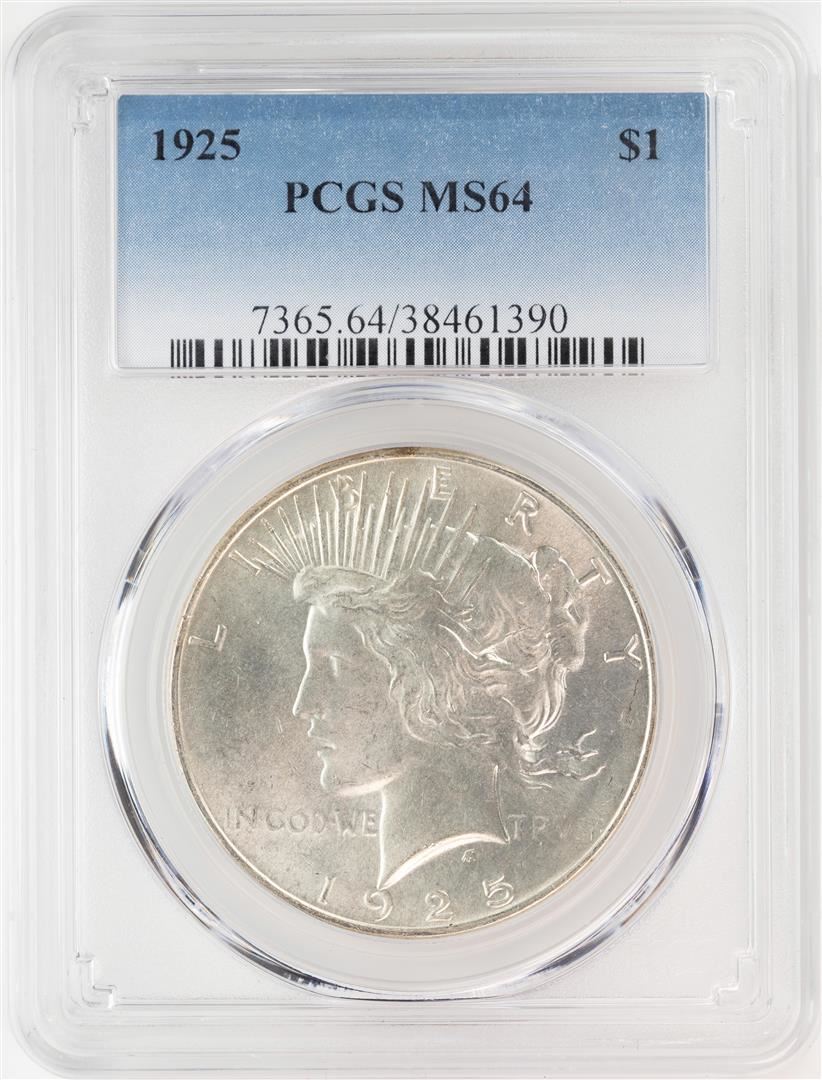 One 1925 $1 Peace Silver Dollar Coin PCGS MS64. PCGS Graded.