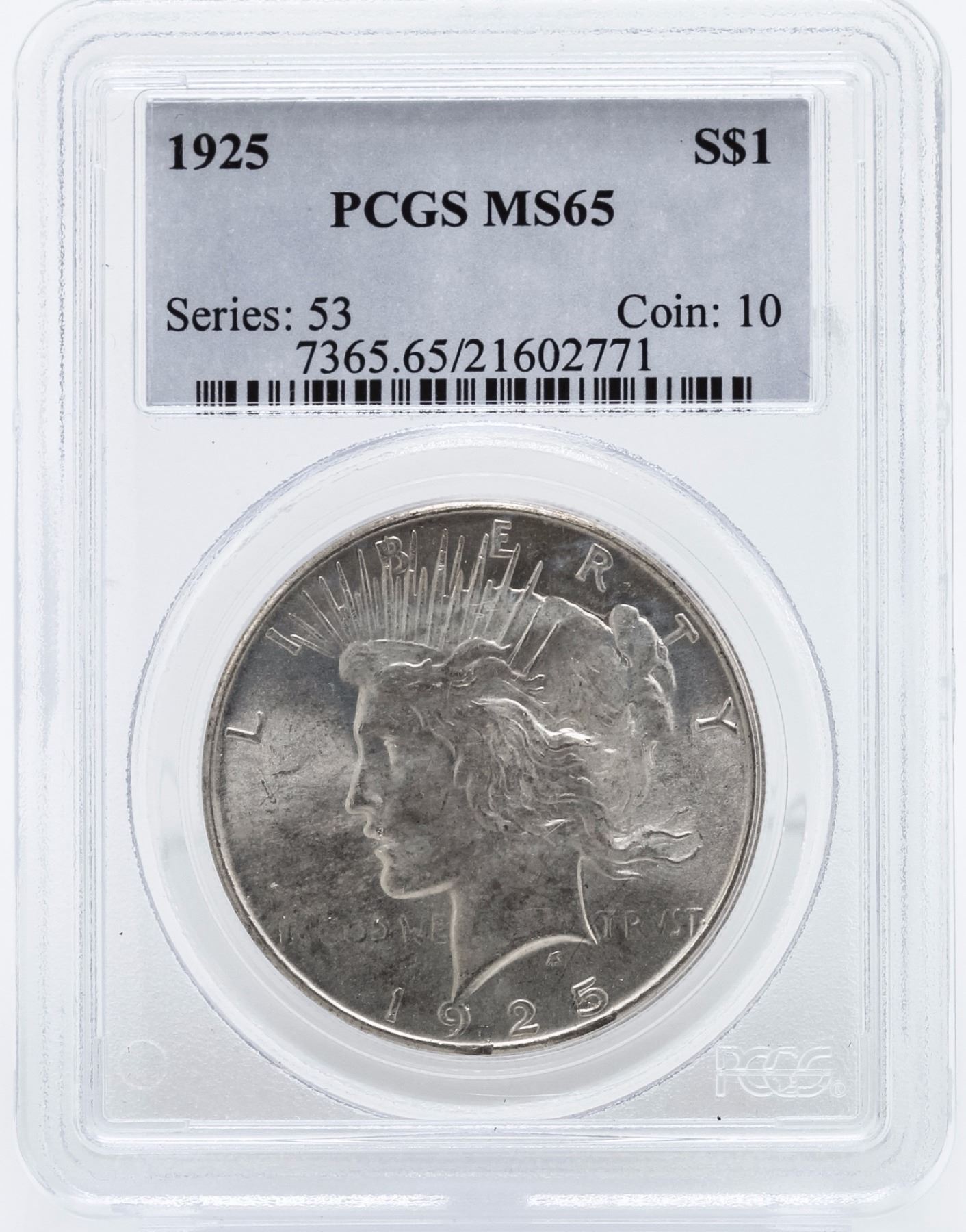 One 1925 $1 Peace Silver Dollar Coin PCGS MS65.