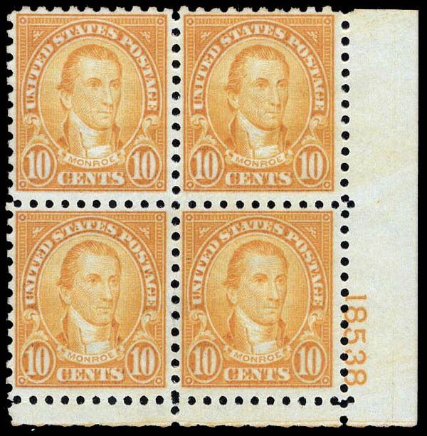 1925, 10¢ Monroe, rotary press printing, perf. 10. Scott 591. F