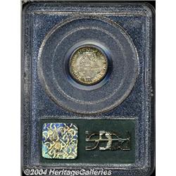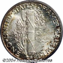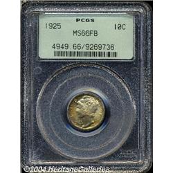 <B>1925<10C> MS66 Full Bands PCGS.</B></I> Exceptionally vibrant and blemish-free beneath a moderate overlay of delicate golden, crimson, and jade-green toning. Choice and better examples of this mid-1920s issue are located without too much difficulty, but the supply of Gem pieces is surprisingly thin, especially as an MS66. Population: 22 in 66, 2 finer (9/04). <BR><BR><B>Important notice:</B> Heritage usually auctions material at the rate of 200-250 lots per hour. On some occasions eBay Live bid software or the Internet may not be able to keep up with the pace of the auction. We recommend placing a realistic absentee bid now as insurance to avoid disappointment. Occasionally the auctioneer may eliminate or reject an eBay Live bid, and the auctioneer may also reopen a lot after the close of the eBay live bidding (usually because we missed an audience bid), and may reject your bid even if it shows you as the winning bidder. By bidding via eBay Live, you agree that Heritage may award the lot to another bidder at its sole discretion under the circumstances described above or any other reasonable circumstances. Since eBay bids are not shown to us until we open the lot on the floor, we treat those bids just like floor bids. In most cases the floor responds before the eBay bid is presented to us, due to Internet lag time, so for consistency we have made it a policy that floor bids are always considered first over tie eBay live bids. Also please note that all Heritage lots purchased through eBay Live carry a 20% Buyer's Premium. Please make sure you read the Terms and Conditions before you bid.