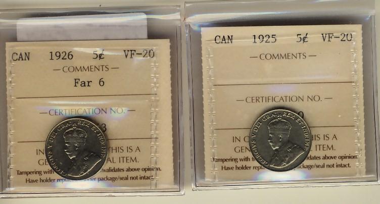 1925 & 1926 Far ICCS VF20. Lot of 2 coins.