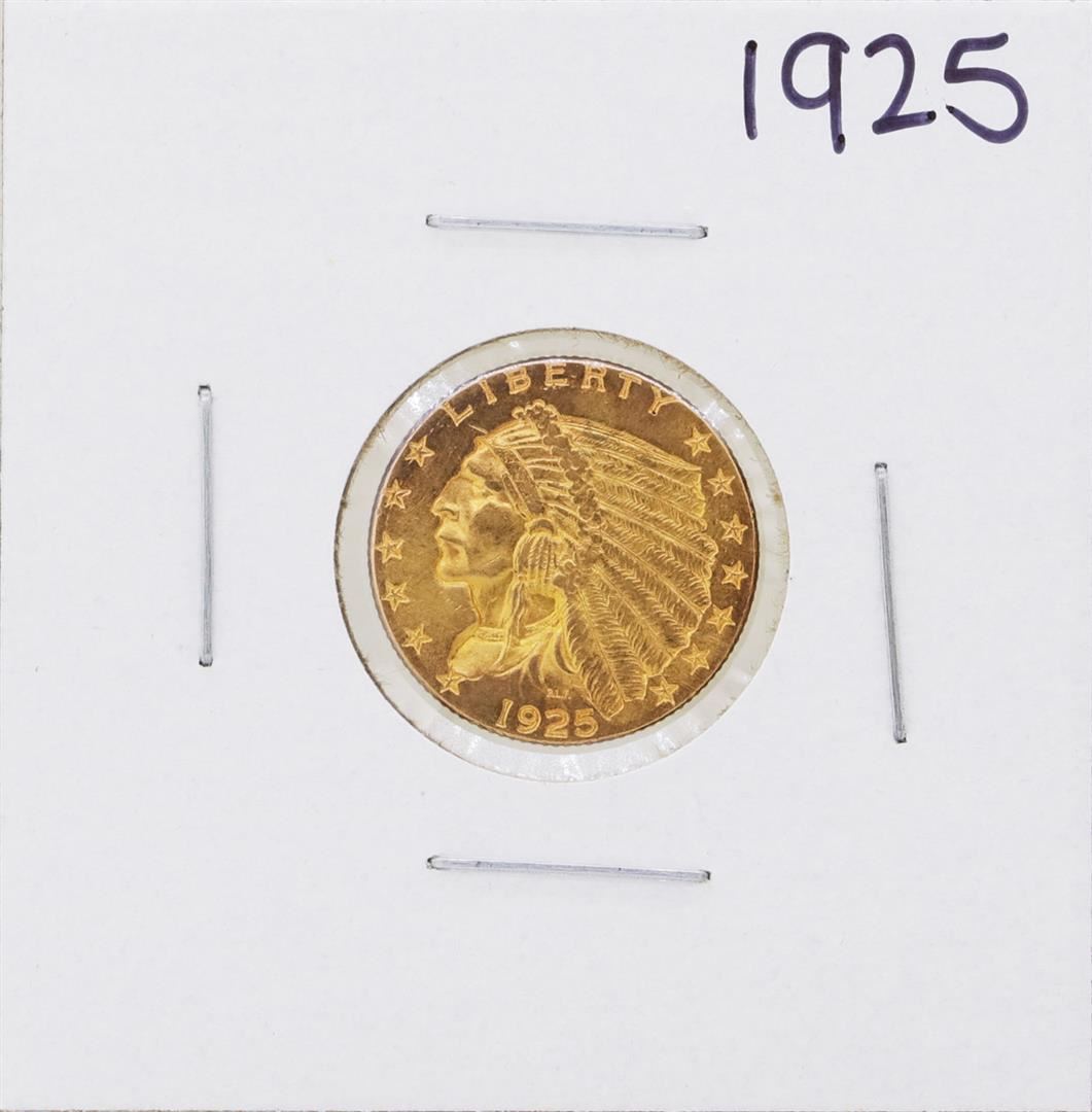 One 1925 $2 1/2 Indian Head Quarter Eagle Gold Coin.