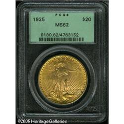 <B>1925 $20 MS62 PCGS.</B></I> A honey-gold example with rich luster and no heavy marks. Among the more prolific issues from the final years of the denomination. Lot:9693