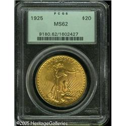 <B>1925 $20 MS62 PCGS.</B></I> A lustrous and lightly marked Saint-Gaudens Twenty. The Capitol building is splendidly defined. Lot:9691