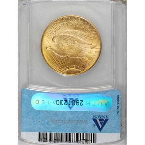 <B>1925 $20 MS64 ANACS.</B></I> NGC Census: (12299/3671). PCGS Population (9064/5430). Mintage: 2,831,750. Numismedia Wsl. Price for NGC/PCGS coin in MS64: $845. (#9180)<BR><BR><B>Coin Engraver:</B> Augustus Saint-Gaudens<BR><BR><b>Shipping:</b> Coins & Currency (<a target="_blank" href="http://www.heritageauctions.com/common/shipping.php">view shipping information</a>)