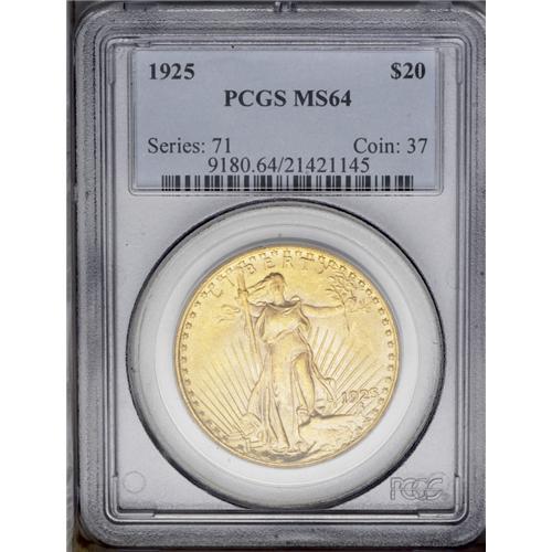 1925 $20 MS64 PCGS. An extremely lustrous, satiny hone 1925[$20] MS64 PCGS.