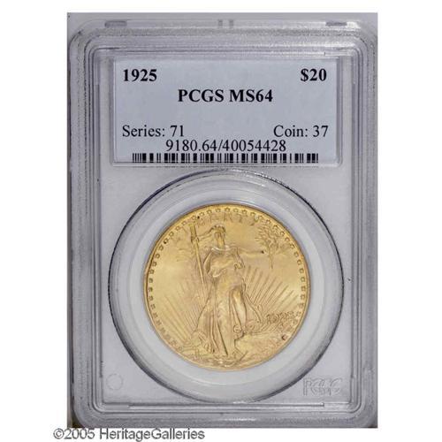 1925 $20 MS64 PCGS. Not an uncommon date, but this is 1925[$20] MS64 PCGS.