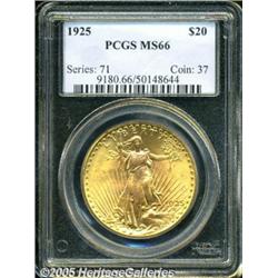 <B>1925 $20 MS66 PCGS.</B></I> Dazzling, intensely lustrous surfaces are free from all but the most inconsequential blemishes. The total certified population of MS66 Saints is lower than one might expect, yet their current price level is most reasonable.