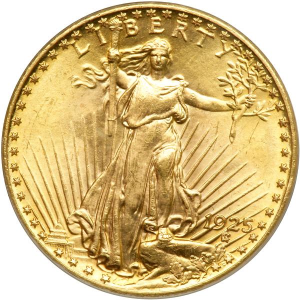 1925 $20 St. Gaudens. ANACS graded MS-64. Untoned and choice. Another well preserved example whose luster remains untamed and inspiring (PCGS # 9180) .