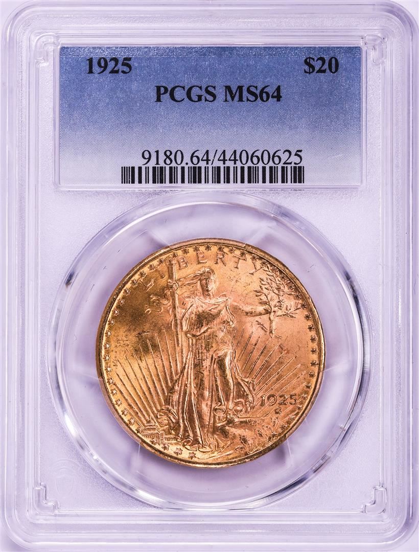 One 1925 $20 St. Gaudens Double Eagle Gold Coin PCGS MS64.