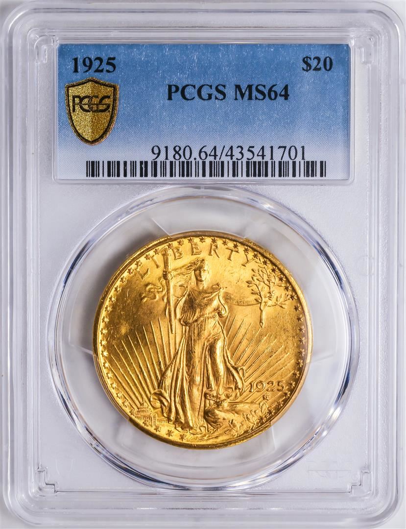 One 1925 $20 St. Gaudens Double Eagle Gold Coin PCGS MS64.