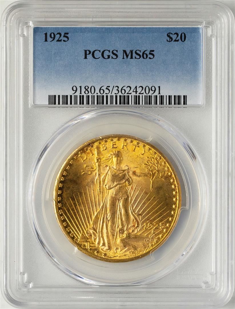 One 1925 $20 St. Gaudens Double Eagle Gold Coin PCGS MS65. PCGS Graded.