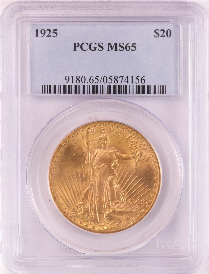 One 1925 $20 St. Gaudens Double Eagle Gold Coin PCGS MS65. PCGS Graded.