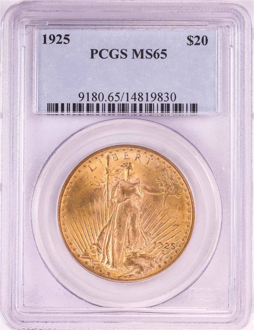 One 1925 $20 St. Gaudens Double Eagle Gold Coin PCGS MS65. PCGS Graded.