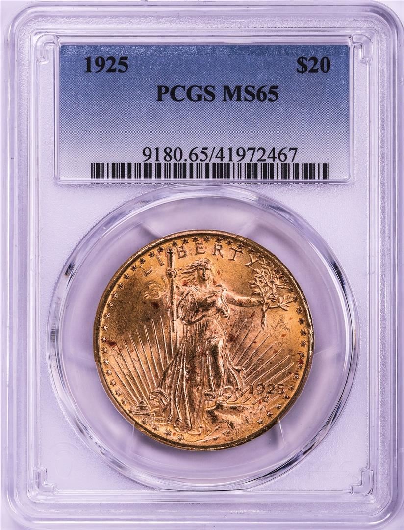 One 1925 $20 St. Gaudens Double Eagle Gold Coin PCGS MS65.