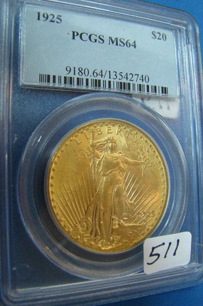 1925 $20 St. Gaudens Gold Coin PCGS MS64