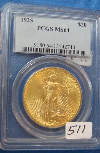 1925 $20 St. Gaudens Gold Coin PCGS MS64