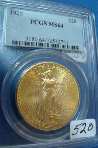 1925 $20 St. Gaudens Gold Coin PCGS MS64