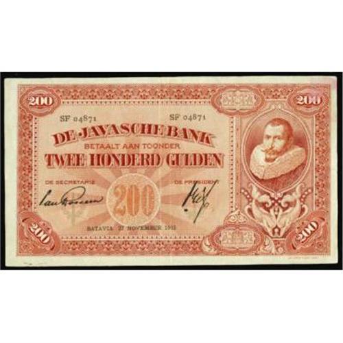 <style type="text/css"> body, td, th { font-family: Arial, Helvetica, sans-serif; font-size: 12px; color: #482424; margin: 0px; padding: 0px; } #header { background-image: url(http://www.bowersandmerena.com/ebay/images/template_v3_01.gif); clear: both; background-color: #590303; border-top-width: 2px; border-top-style: solid; border-top-color: #B38C4F; } #header #header_wrapper { height: 75px; clear: both; width: 800px; margin-right: auto; margin-left: auto; background-image: url(http://www.bowersandmerena.com/ebay/images/template_v3_03.gif); background-repeat: no-repeat; background-position: right; color: #F3EDCC; } #header #header_wrapper #header_logo { float: left; height: 75px; width: 444px; background-image: url(http://www.bowersandmerena.com/ebay/images/template_v3_02.gif); background-repeat: no-repeat; font-size: 10px; text-transform: capitalize; color: #B38C4F; } #header #header_wrapper #header_right { float: left; height: 75px; width: 356px; text-align: right; } #header #header_wrapper #header_right #headerLoginBtn { margin-bottom: 30px; } #header #header_wrapper #header_right input#txtSearch { color: #B49056; border: 1px solid #B49056; width: 175px; padding-top: 3px; padding-right: 3px; padding-bottom: 4px; padding-left: 3px; } #nav { height: 37px; background-image: url(http://www.bowersandmerena.com/ebay/images/template_v3_05.gif); clear: both; } #nav #nav_wrapper { height: 35px; width: 800px; margin-right: auto; margin-left: auto; border-left-width: 1px; border-left-style: solid; border-left-color: #B38C4F; } #nav #nav_wrapper a { padding-right: 15px; padding-left: 15px; border-right-width: 1px; border-right-style: solid; border-right-color: #B38C4F; height: 25px; padding-top: 10px; display: block; float: left; text-decoration: none; font-weight: bold; color: #5D0303; } #nav #nav_wrapper a:hover { color: #B38C4F; } #nav #nav_wrapper #search { float: right; padding-top: 7px; } #nav #nav_wrapper #search #txtSearch { font-family: Arial, Helvetica, sans-serif; font-size: 10px; text-transform: uppercase; color: #D2AE75; border: 1px solid #B38C4F; padding: 3px; } #content_bgd { background-image: url(http://www.bowersandmerena.com/ebay/images/template_v3_09.gif); background-repeat: repeat-y; background-position: center; padding-top: 15px; padding-bottom: 15px; background-color: #FBFBDB; } #content_wrapper { clear: both; height: auto; width: 800px; margin-right: auto; margin-left: auto; } .LotDetailWhite { line-height:normal; font-size:13px; font-family: arial,helvetica,sans-serif; color: White; font-weight: bold; } .LotDetailInformation { line-height:normal; font-size: 13px; font-family: arial,helvetica,sans-serif; } .LotDetailMessage { line-height:normal; font-size: 13px; font-family: arial,helvetica,sans-serif; color: red; } } tr.HeaderAuctionTitle td { color: #000000; font-weight: bold; padding: 2px; background-image: url(http://www.bowersandmerena.com/ebay/images/template_v3_05.gif); background-repeat: repeat-x; border-bottom-width: 1px; border-bottom-style: solid; border-bottom-color: #B38C4F; } table.AuctionSummary a, table.AuctionSummary a:link, table.AuctionSummary a:visited { color: #0000FF; text-decoration: none; } } td.tableHeaderLeft { border-left-width: 1px; border-left-style: solid; border-left-color: #B38C4F; } td.tableHeaderRight { border-right-width: 1px; border-right-style: solid; border-right-color: #B38C4F; } td.tableCellMiddle { border-left-width: 1px; border-left-style: solid; border-left-color: #B38C4F; border-right-width: 1px; border-right-style: solid; border-right-color: #B38C4F; padding: 5px; } tr.footer td { border-top-width: 1px; border-top-style: solid; border-top-color: #B38C4F; } </style> </head> <body> <div id="header"> <div id="header_wrapper"> <div id="header_logo"> </div> <div id="header_right"> </div> </div> </div> <div id="nav"> <div id="nav_wrapper"> <a href="http://www.bowersandmerena.com">Our eBayLive Auctions</a> <a href="#PaymentInfo">Payment Information</a> <a href="#ShippingInfo">Shipping Information</a> <a href="#About">About Bowers and Merena</a> </div> </div> <div id="content_bgd"> <div id="content_wrapper"> <table width="100%" border="0" cellpadding="5" cellspacing="0" class="AuctionSummary"> <tbody> <tr class="HeaderAuctionTitle" style="height: 25px;"> <td align="left" class="tableHeaderLeft" > </td> <td align="center" class="tableHeaderRight"> <span style="font-size: large;">Lot #2909. Netherlands Indies. 1925 200 Gulden. De Javasche Bank. Extremely Fine.</span> </td> </tr> <tr> <td colspan="3" class="tableCellMiddle"> P-74b. An interesting denomination that shows itself well with minimal circulation and great appeal due mostly to the deep orange inks. This issue is one of the scarcest denominations only bested by the 300 Gulden note. There is a slight stain on the top right corner which we note for accuracy. This great piece would look terrific among the other denominations of the 1925-31 issues.