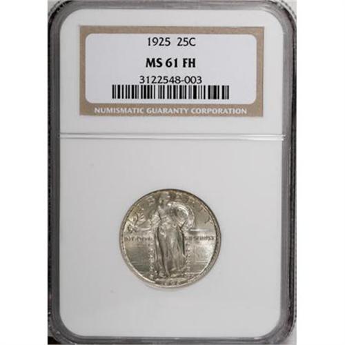 <B>1925 25C MS61 Full Head NGC.</B></I> NGC Census: (14/370). PCGS Population (4/562). Mintage: 12,280,000. Numismedia Wsl. Price for NGC/PCGS coin in MS61: $175. (#5753)<BR><BR><B>Coin Engraver:</B> Hermon A. MacNeil<BR><BR><b>Shipping:</b> Coins & Currency (<a target="_blank" href="http://www.heritageauctions.com/common/shipping.php">view shipping information</a>)