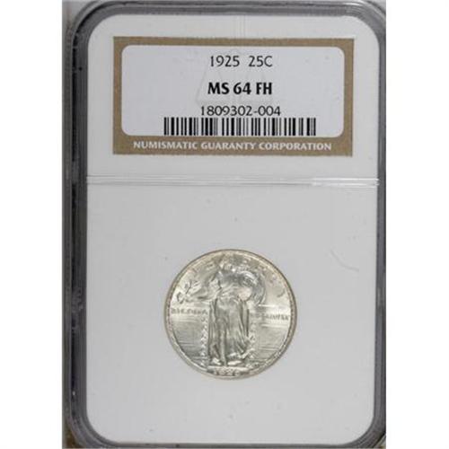 <B>1925 25C MS64 Full Head NGC.</B></I> NGC Census: (153/111). PCGS Population (216/169). Mintage: 12,280,000. Numismedia Wsl. Price for NGC/PCGS coin in MS64: $408. (#5753)<BR><BR><B>Coin Engraver:</B> Hermon A. MacNeil<BR><BR><b>Shipping:</b> Coins & Currency (<a target="_blank" href="http://www.heritageauctions.com/common/shipping.php">view shipping information</a>)