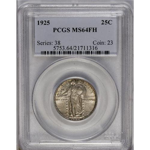 <B>1925<25C> MS64 Full Head PCGS.</B></I> Unusually well struck for a Type Two quarter, and the lustrous surfaces are attractively toned golden-brown and steel-gray. No marks of consequence are located.