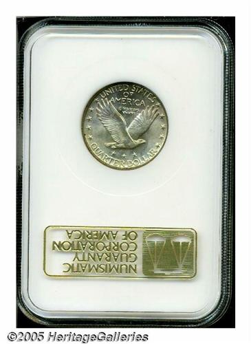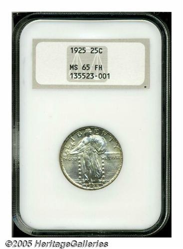 <B>1925<25C> MS65 Full Head NGC.</B></I> Boldly struck, with excellent full details on Liberty's head, and slight weakness on the shield and on the eagle's breast. Silver-gray surfaces display just a touch of light tan color. A minute mark is noted on the bottom of the inner shield, and a few more on the right (facing) wall. Population: 62 in 65, 29 finer (4/05).<BR><I>From The Clifford Columbus Collection.</B></I>