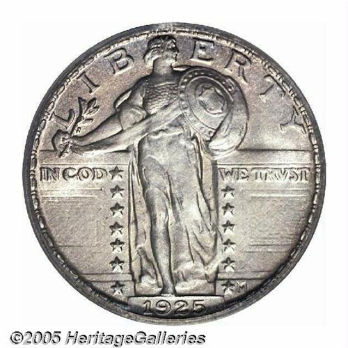 <B>1925<25C> MS66 Full Head PCGS.</B></I> Fully struck and virtually pristine, this lustrous example displays a deep coating of original patina over both sides, featuring lovely shades of steel-blue and rose. An outstanding Premium Gem, conditionally scarce at this level, and rare any finer. Population: 40 in 66 Full Head, 6 finer (6/05).<BR><I>From The Melrose Bay Collection.</B></I>