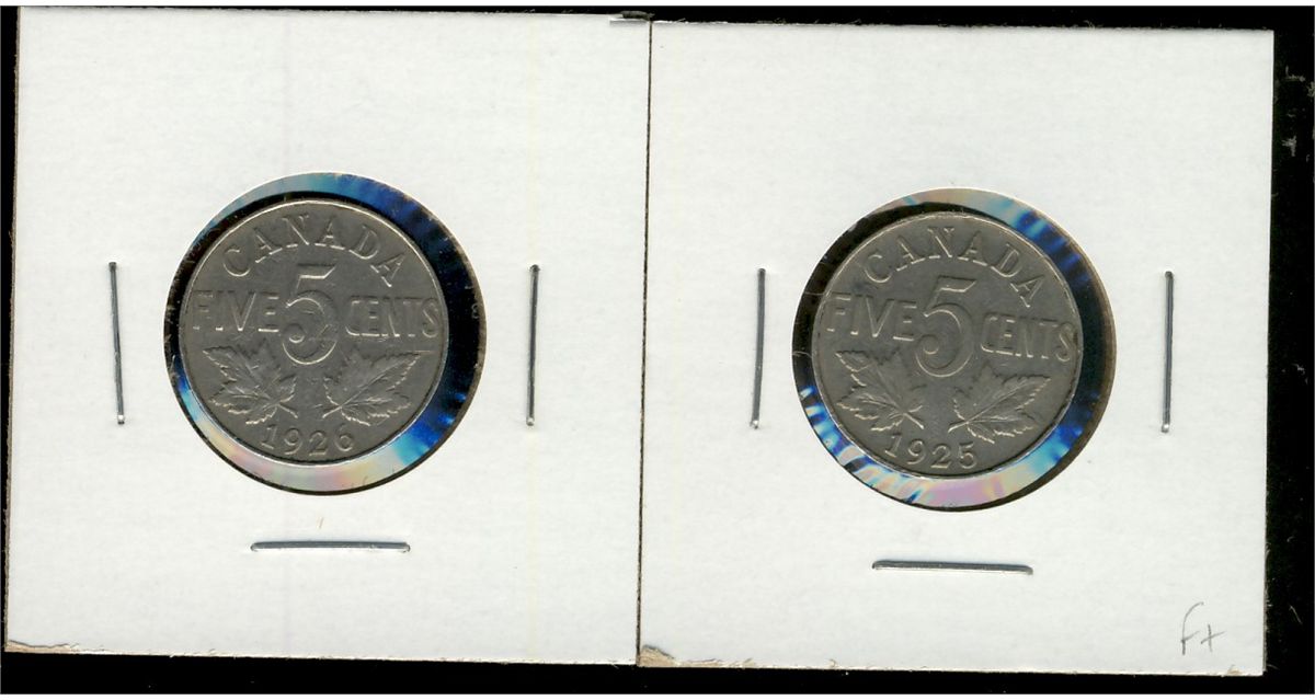 1925 5¢ & 1926 Far. Lot of 2 coins in F/VF condition.