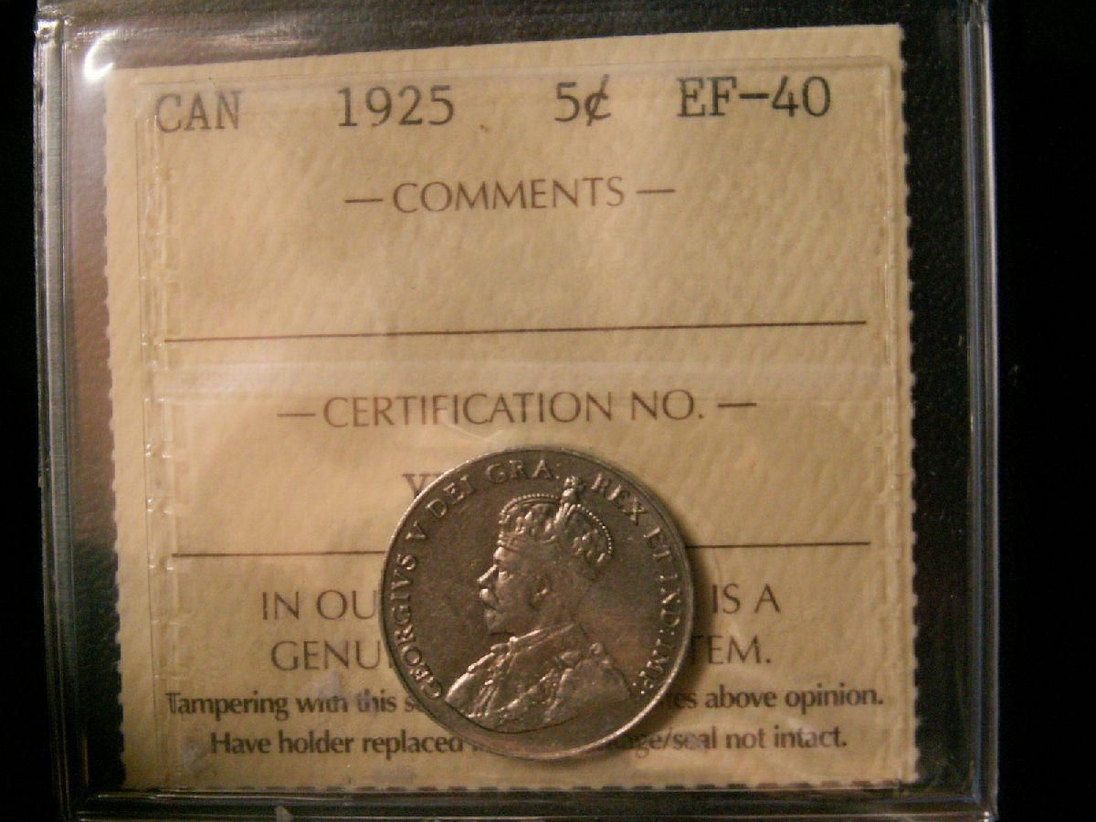 1925 5¢ ICCS EF40. Some lustre.
