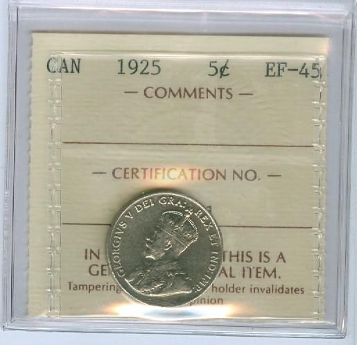 1925 5¢ ICCS EF45. Key date example.