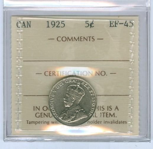 1925 5¢ ICCS EF45. Key date example.