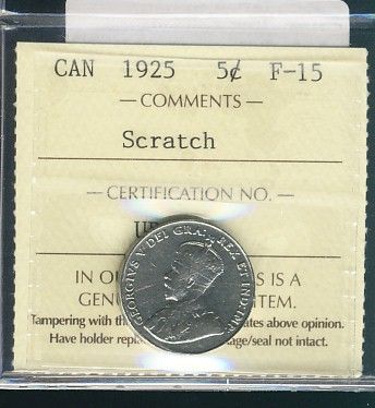 1925 5¢ ICCS F15 scratch.