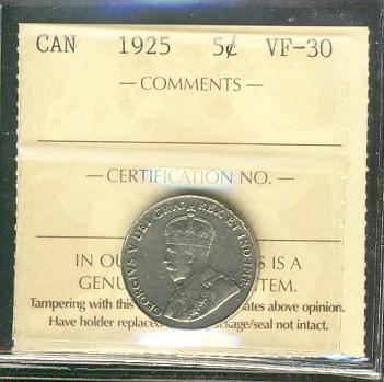 1925 5¢ ICCS VF30.