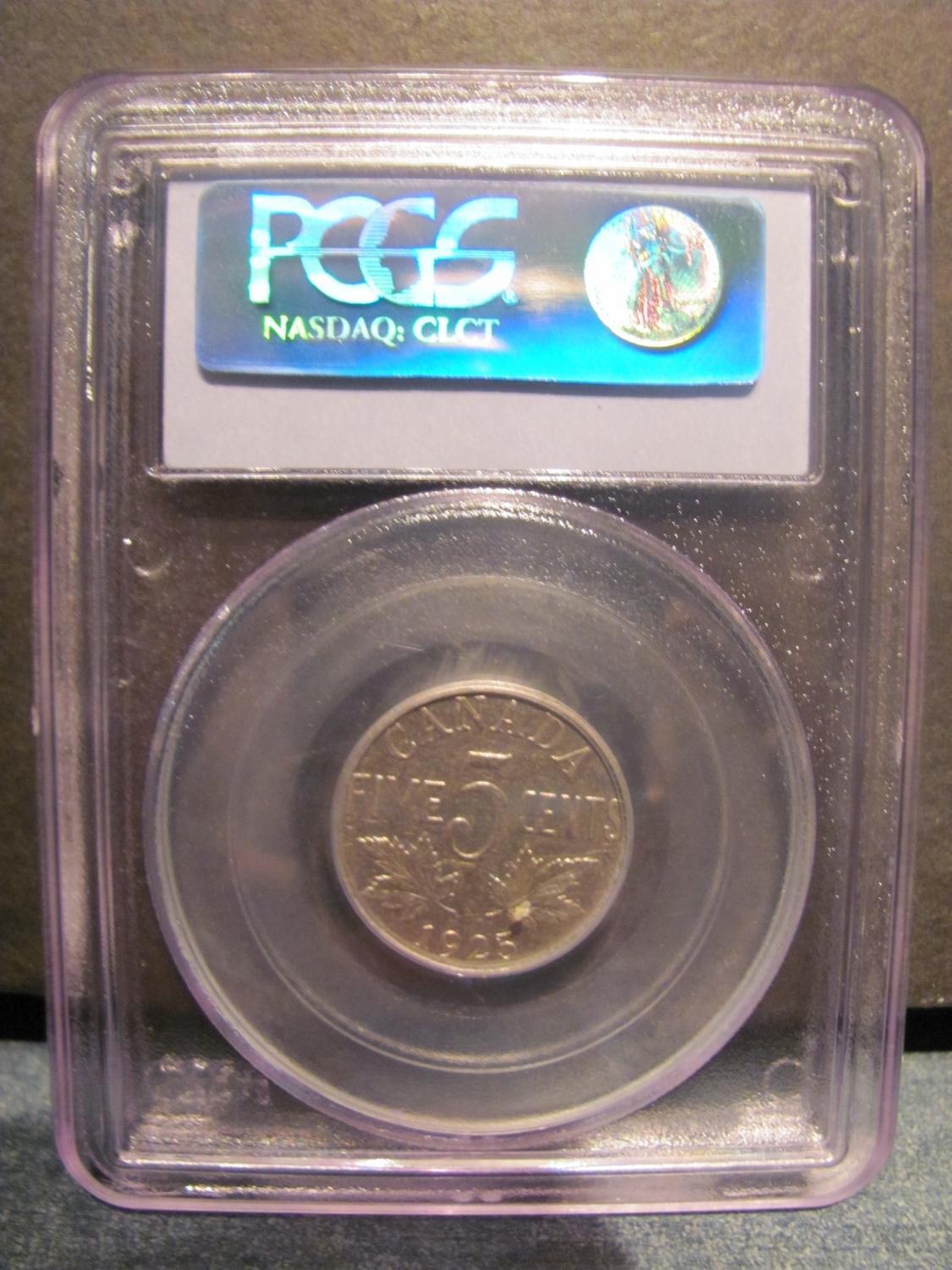 Very low mintage, very few on the market that's the 1925 5 cents is. This one has been graded by one of the most reputable grading company.