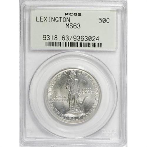<B>1925 50C Lexington MS63 PCGS.</B></I> PCGS Population (1036/2603). NGC Census: (563/2492). Mintage: 162,013. Numismedia Wsl. Price for NGC/PCGS coin in MS63: $100. (#9318)<BR><I>From The Frank DuVall Collection of U.S. Commemoratives.</B></I><BR><BR><b>Shipping:</b> Coins & Currency (<a target="_blank" href="http://www.heritageauctions.com/common/shipping.php">view shipping information</a>\)