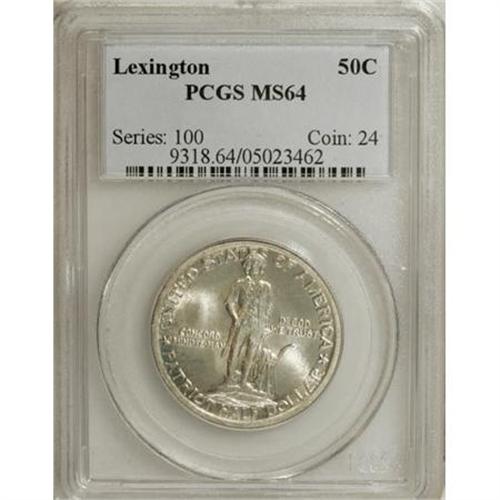 <B>1925 50C Lexington MS64 PCGS.</B></I> PCGS Population (1570/1056). NGC Census: (1599/886). Mintage: 162,013. Numismedia Wsl. Price for NGC/PCGS coin in MS64: $160. (#9318)<BR><BR><b>Shipping:</b> Coins & Currency (<a target="_blank" href="http://www.heritageauctions.com/common/shipping.php">view shipping information</a>)