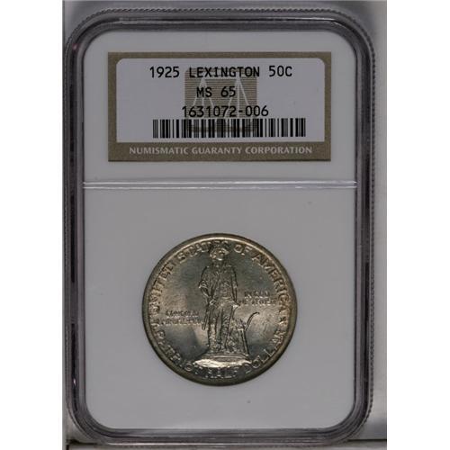 <B>1925<50C> Lexington MS65 NGC.</B></I> Soft reddish-gray patina has lightly collected on each side of this impressively defined piece. There are no noteworthy marks on either side.